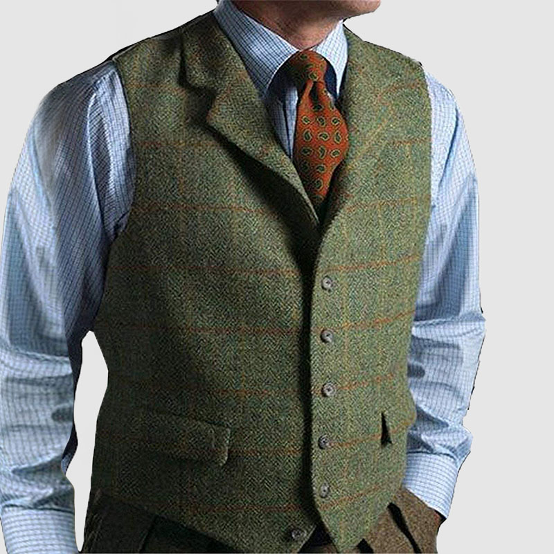 Men's Vintage Plaid Basic Lapel Sleeveless Vest