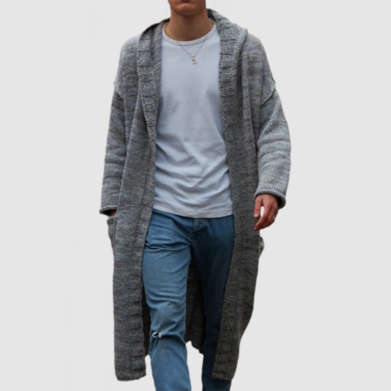 Men's Casual Loose Long Hooded Knitted Cardigan