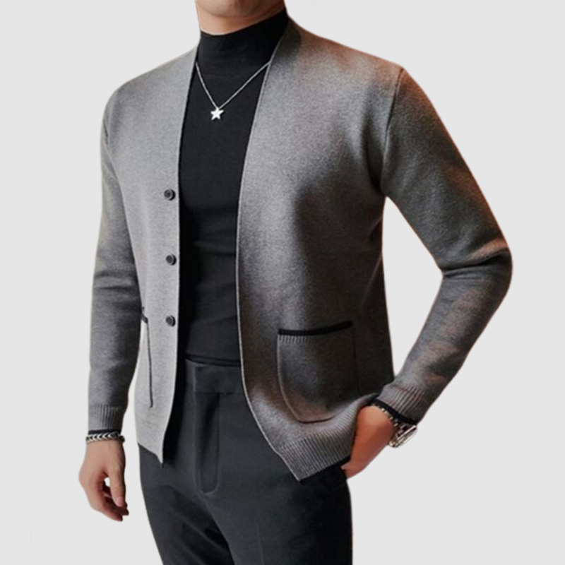 Men's Elegant V-Neck Contrasting Knitted Cardigan NEW