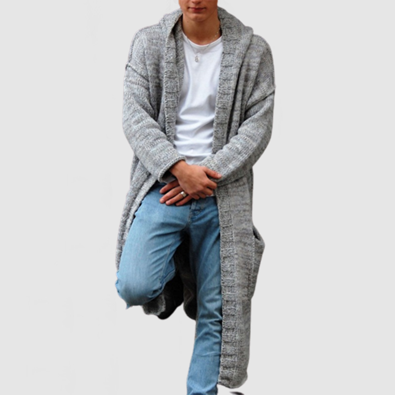 Men's Casual Loose Long Hooded Knitted Cardigan