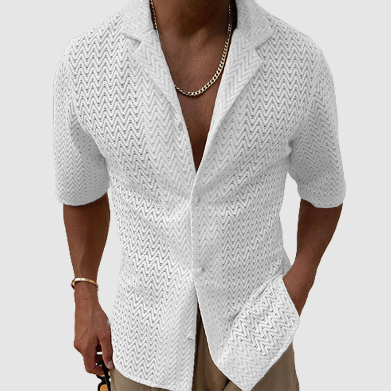 Men's summer hollowed-out sweater solid color lapel short sleeve knit shirt
